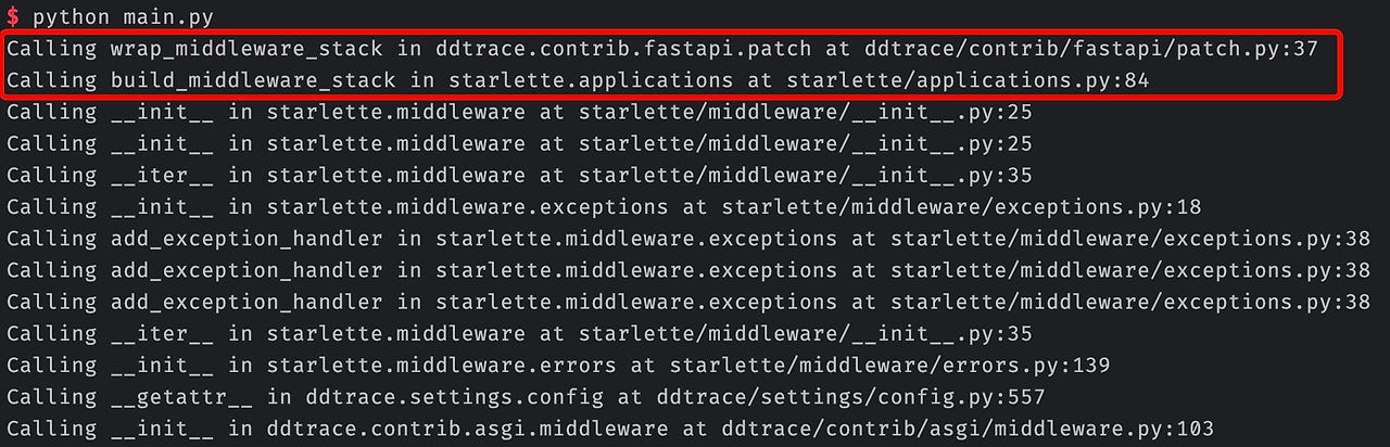 예컨대, _w("fastapi.applications", "FastAPI.build_middleware_stack", wrap_middleware_stack) 함수를 분석하면 다음과 같다.