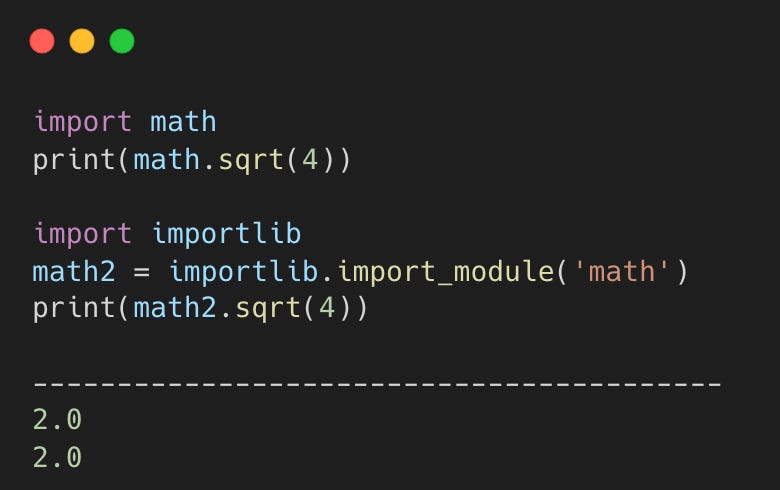 importlib.import_module은 모듈 이름을 통해서 실제 모듈 코드를 메모리에 올려주는 작업을 수행한다. 우리가 흔히 import 구문을 쓰는 것과 같은 방식으로 진행된다고 보면 된다. import_module을 사용하는 이유는 Path에 따라서 모듈을 동적으로 불러오기 위함이다. 모듈 이름에 따라서 동적으로 모듈 코드를 불러와서 해당 함수를 호출하고 싶은데, import 구문을 사용해서는 이를 구현하기 어렵다. 위 코드처럼 import_module 함수를 사용하면, 어떤 모듈이든 동적으로 불러와서 사용할 수 있다.
