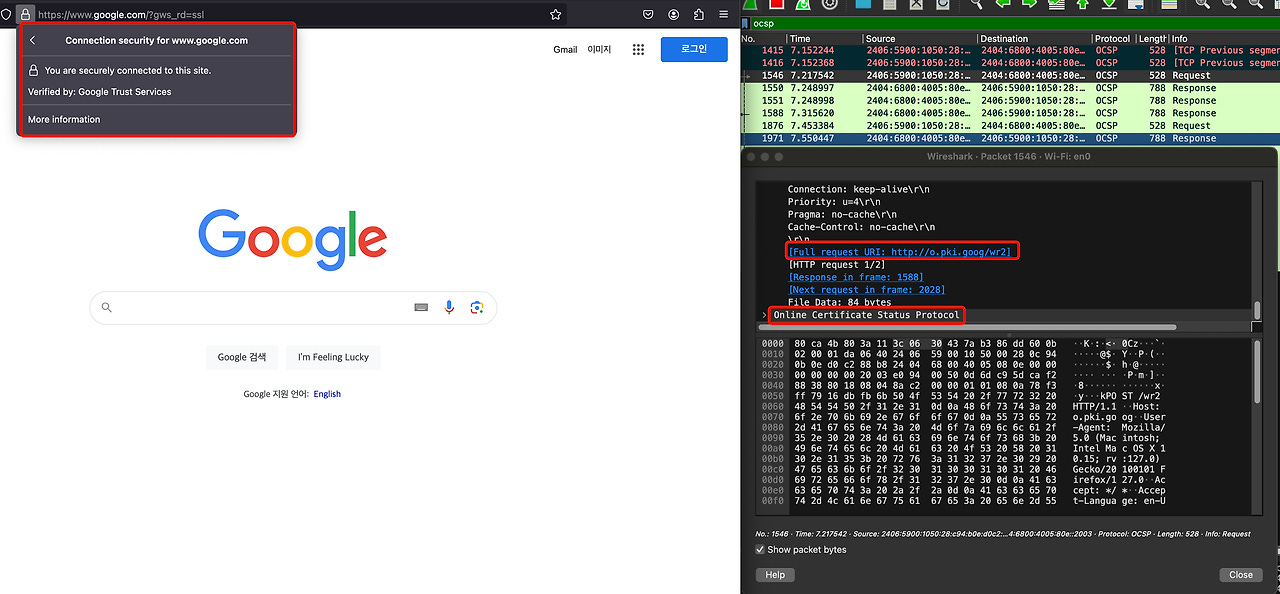 Firefox를 통해서 실제 패킷을 잡아보면, 다음과 같이 OCSP 요청이 발생하는 것을 볼 수 있다.