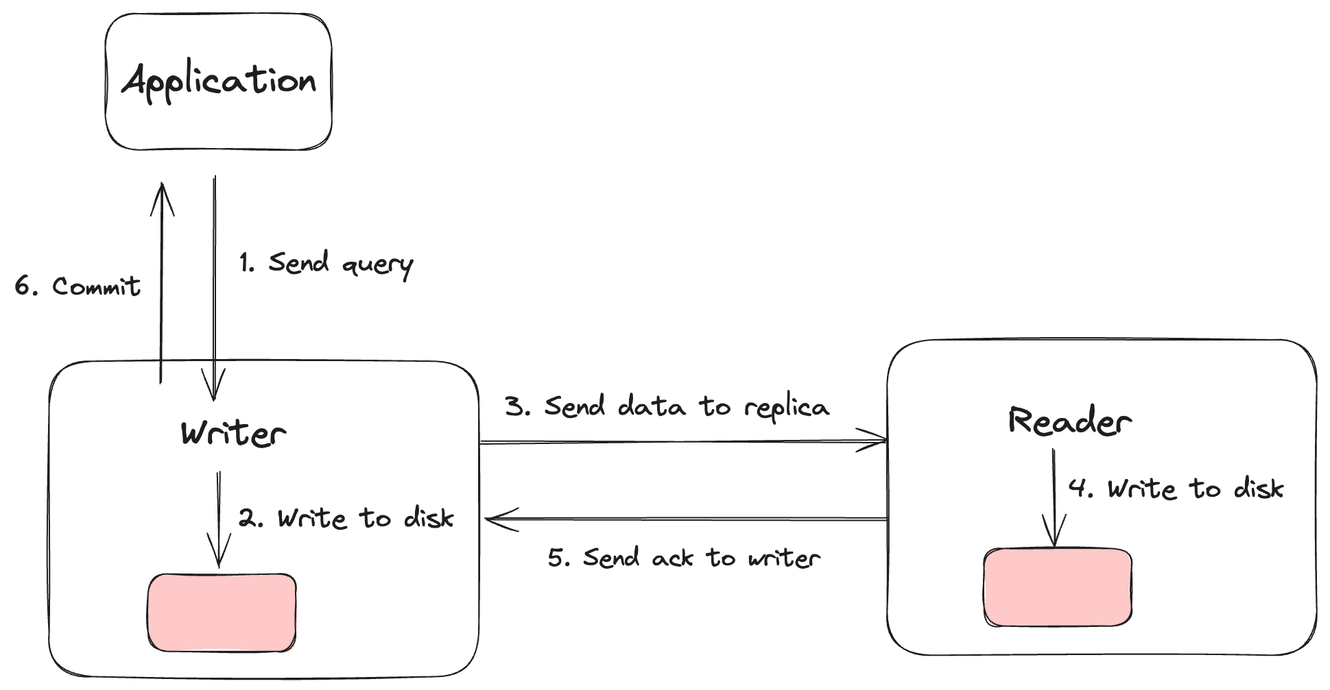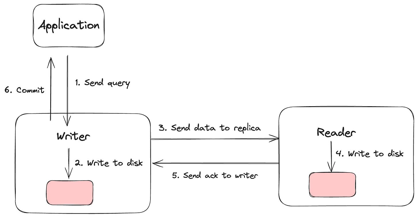 또한, 동기 복제를 구현할 때는 데이터베이스의 트랜잭션 일관성을 유지하기 위한 여러 가지 기법이 사용된다. 그 중 하나는 2단계 커밋(two-phase commit)이다. 2단계 커밋은 트랜잭션이 커밋되기 전에 주 서버와 복제 서버가 모두 준비되었는지 확인하는 과정을 거친다. 이를 통해 주 서버와 복제 서버 간의 데이터 불일치를 방지할 수 있다.