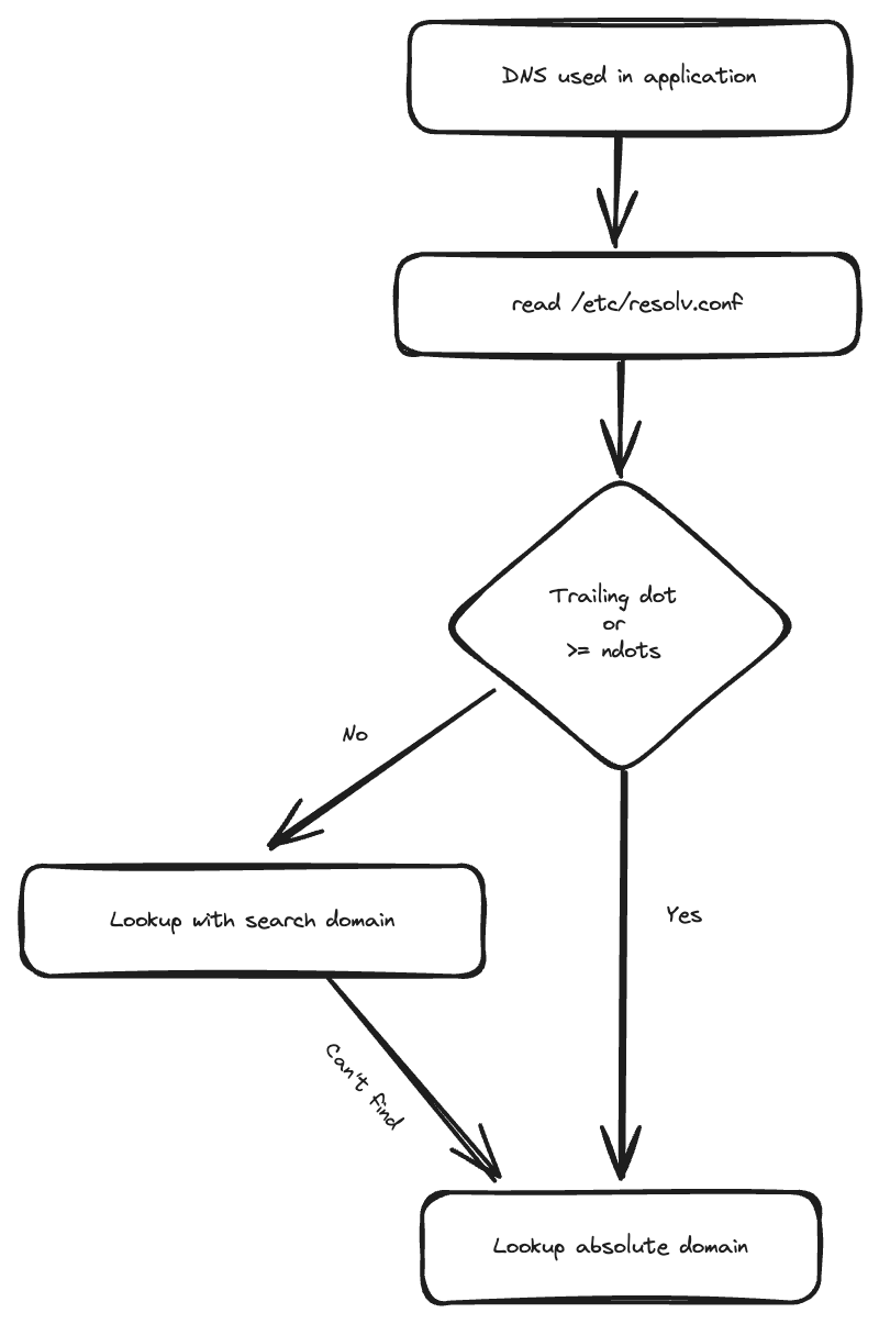처음에는 CoreDNS 쪽에서 특별하게 기능을 넣어준 것이라 생각했다. 쿠버네티스 상에서는 도메인을 질의하게 되면, cluster.local로 끝나는 도메인을 먼저 찾아주는 건 알고 있었는데, 그 기능이 그냥 당연하게 제공한다고만 생각했다.