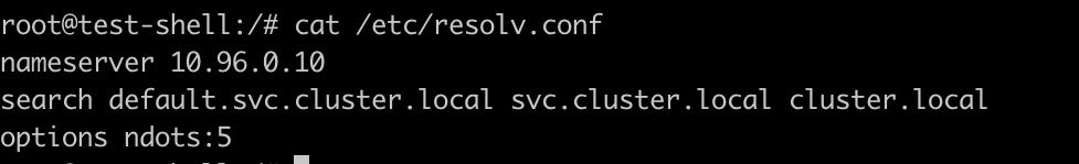 파드에서 /etc/resolv.conf를 확인해 보면 다음과 같이 설정이 되어 있다.